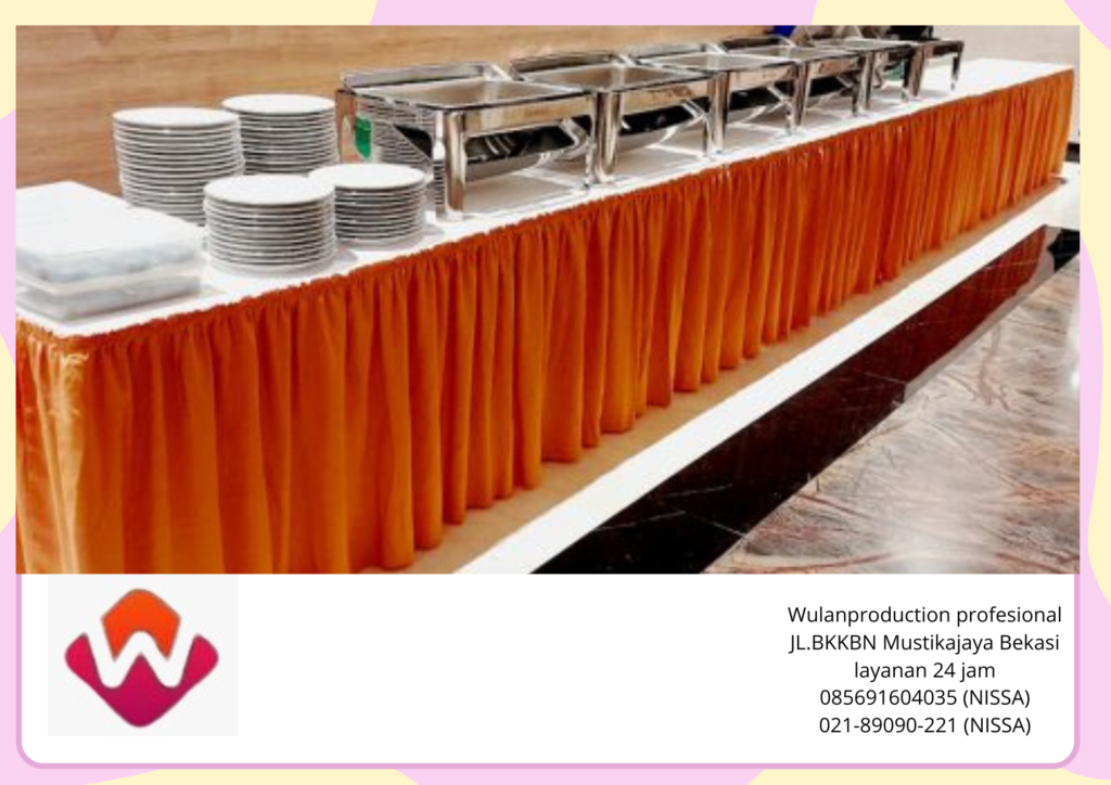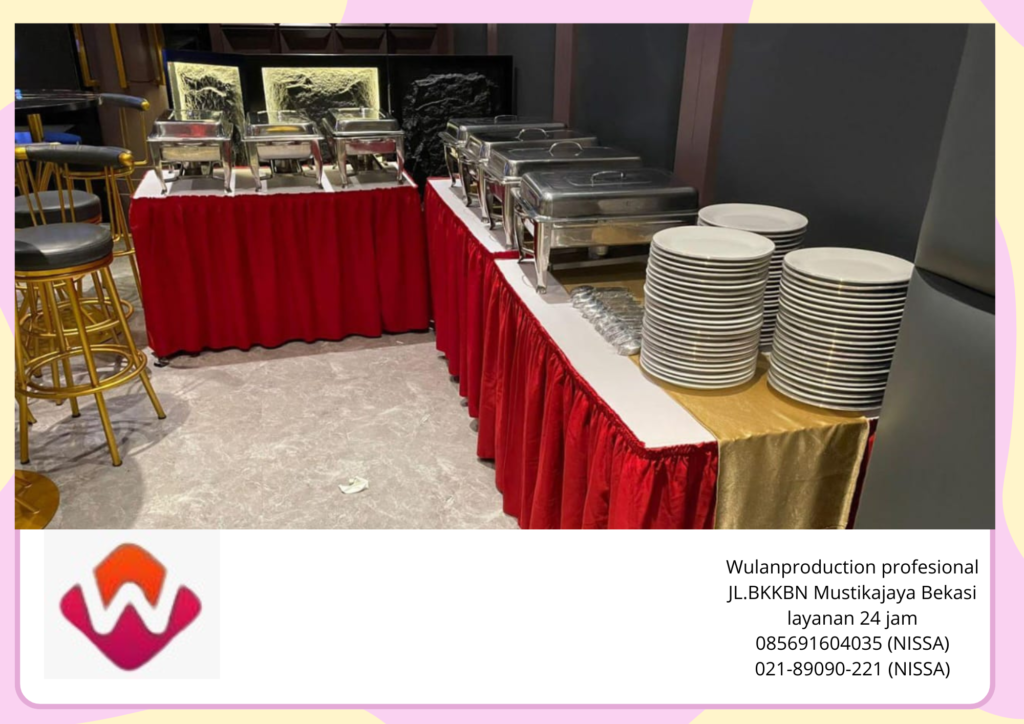 Wulan Production adalah spesialis gudang alat alat catering terlengkap sejabodetabek dan sekitarnya anda bisa sewa diaman pun dan kapan pun dan jangan ragu untuk kualitas barang kami pastikan barang bersih ,terwat dan aman siap unuk digunakan dan juga sudah vaksin booster agar lebih aman.