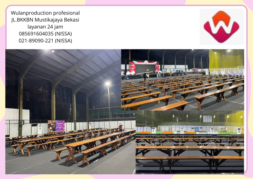 Wulan Production adalah gudangnya alat alat event seperti kusi dan meja taman ini kami ready banyak anda bisa booking sekarang atau dadakan kami juga bisa jika anda pesan sedikit atau banyak tetap kami layani .